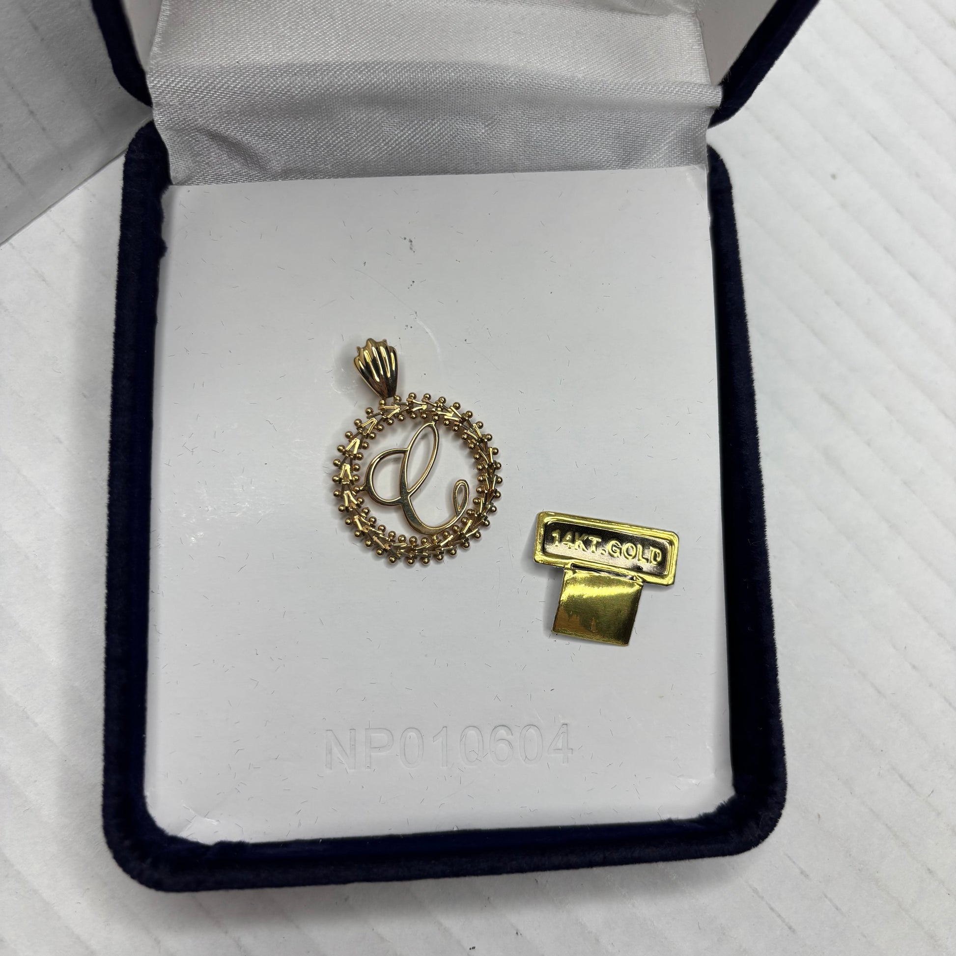 Excellent Pre-Owned vintage condition. Includes original box. IMPERIAL GOLD 14K Yellow Gold Script Initial "C" Wreath Pendant, Current market value $375