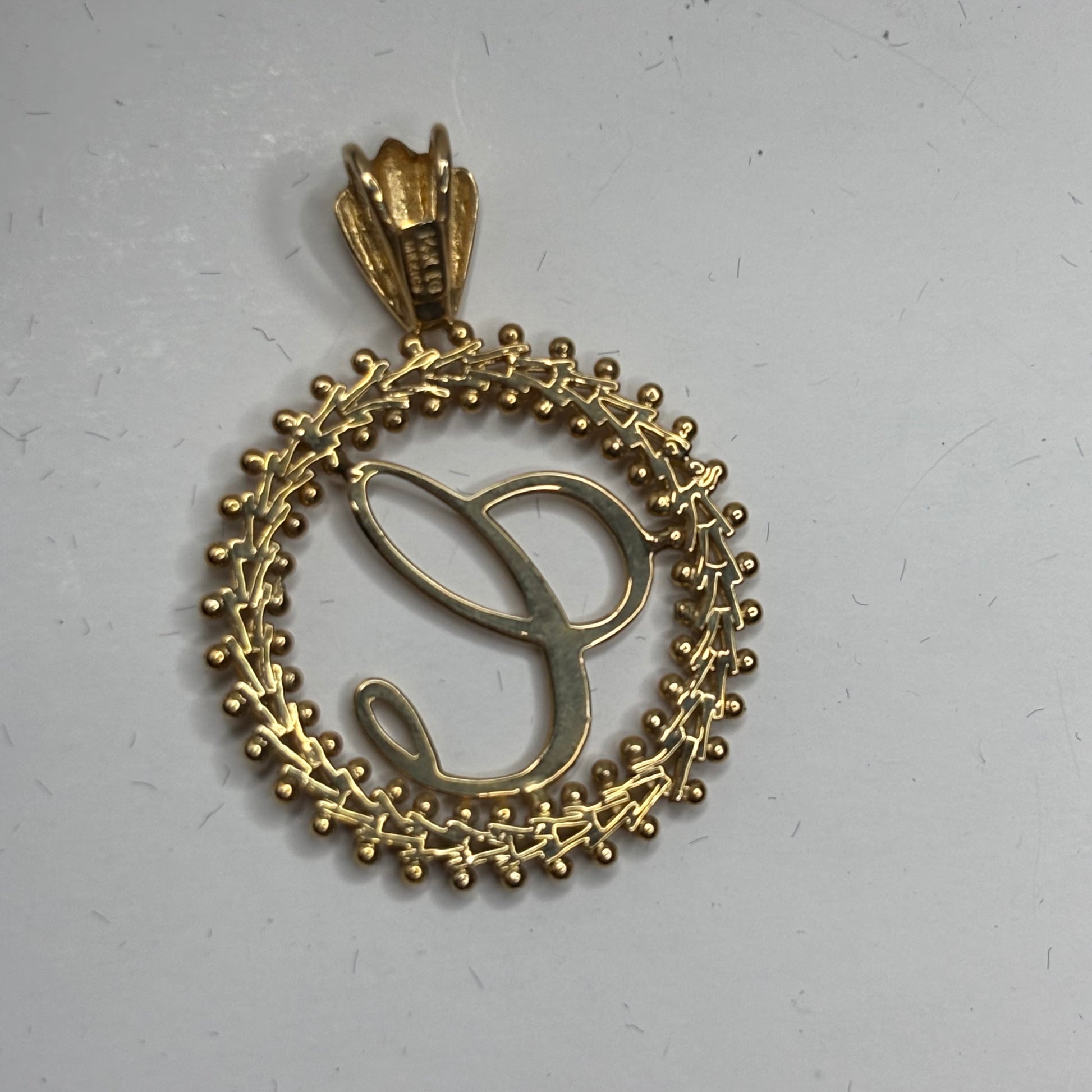 This is a beautiful piece from Imperial Gold, a brand highly regarded for its signature diamond-cut craftsmanship. Stunning vintage Imperial Gold pendant featuring a delicate script letter "C" centered in a beautifully detailed, diamond-cut wreath border. Known for their high-quality craftsmanship, Imperial Gold pieces offer incredible sparkle and shine, especially when they catch the light.