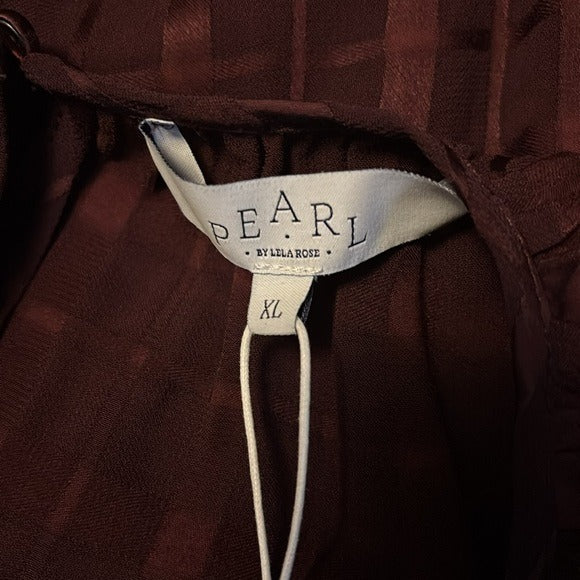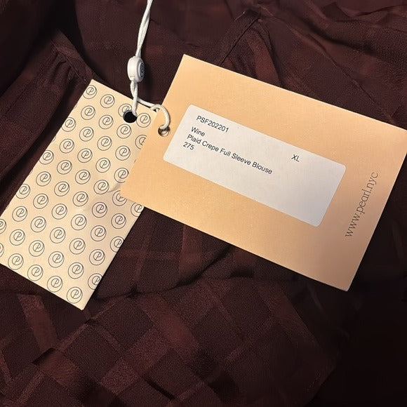*New* PEARL LELA ROSE Wine Plaid Crepe Full Sleeve Blouse Size XL