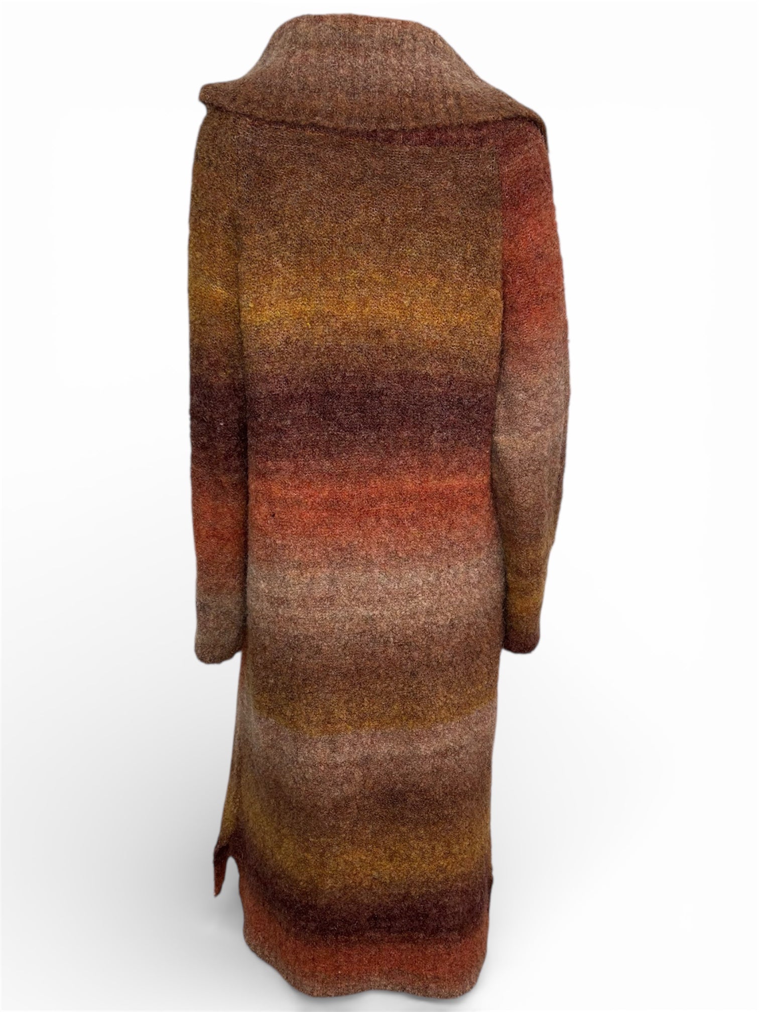 Elevate your cozy style with this stunning Caslon Ombré Sweater Dress. This piece features a beautiful gradient "sunset" colorway, transitioning through rich shades of terracotta, ochre, and chocolate brown.