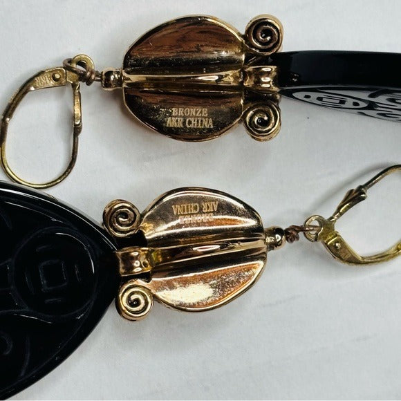 Details: These stunning earrings feature a sophisticated black and gold design, perfect for any occasion. Elevate your style with these elegant accessories.
