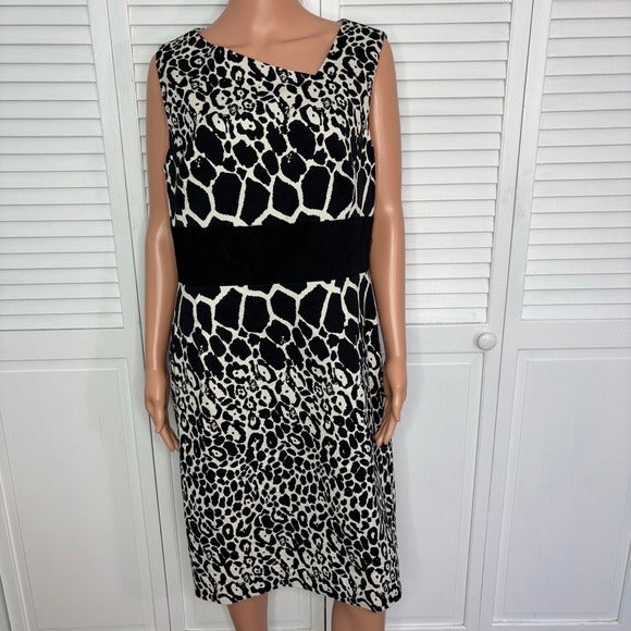 Excellent Pre-Owned BIGIO COLLECTION Black and White Animal Print Dress Size 14, MSRP: $318