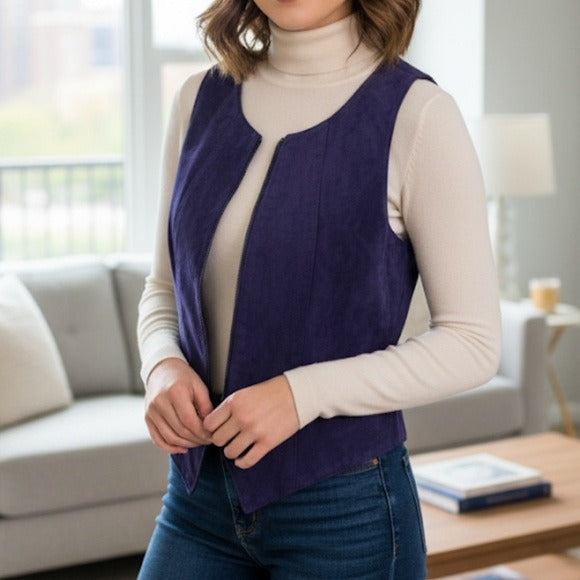 DANIER Vintage Royal Purple Suede Leather Zip-Up Sleeveless Vest Size XS