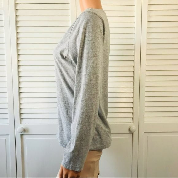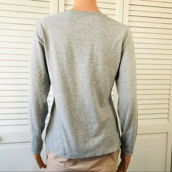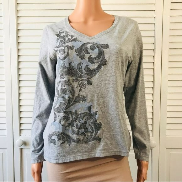 HANES Gray Silver Embellished Long Sleeve V-Neck Top Size M