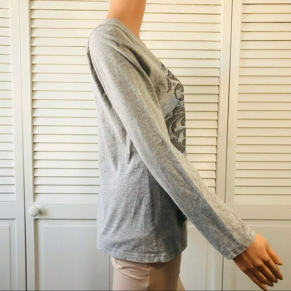 Details: Hanes gray cotton and polyester blend embellished long sleeve top
