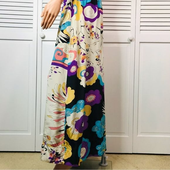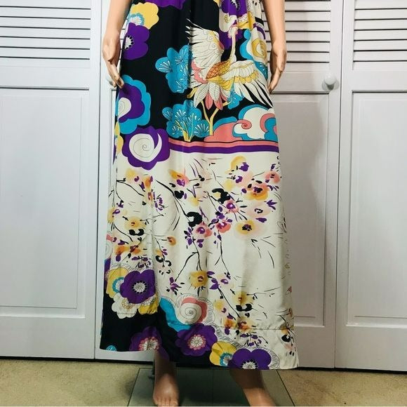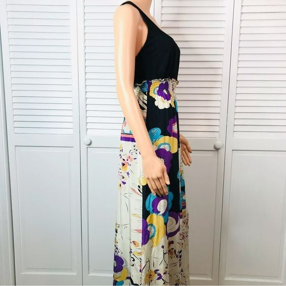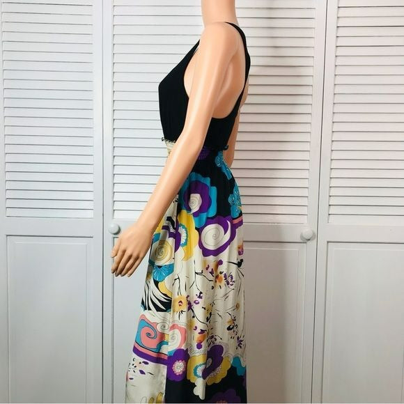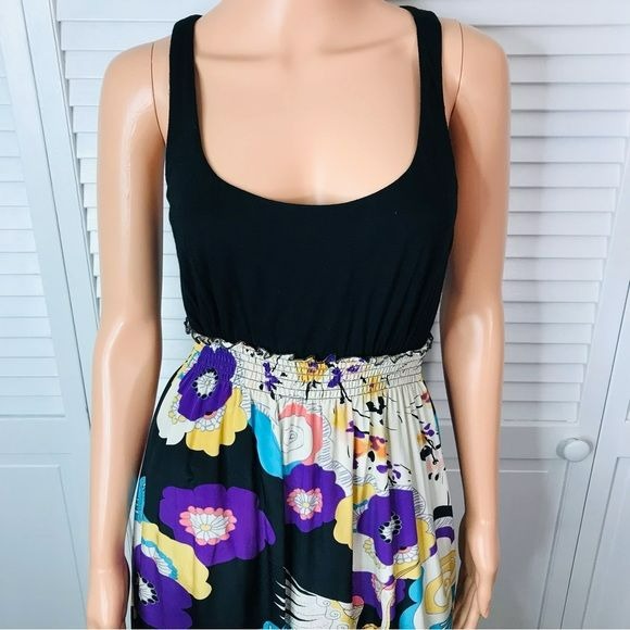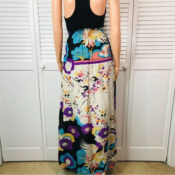 Details: Beautiful printed skirt on this amazing 100% silk black racerback tank maxi dress.