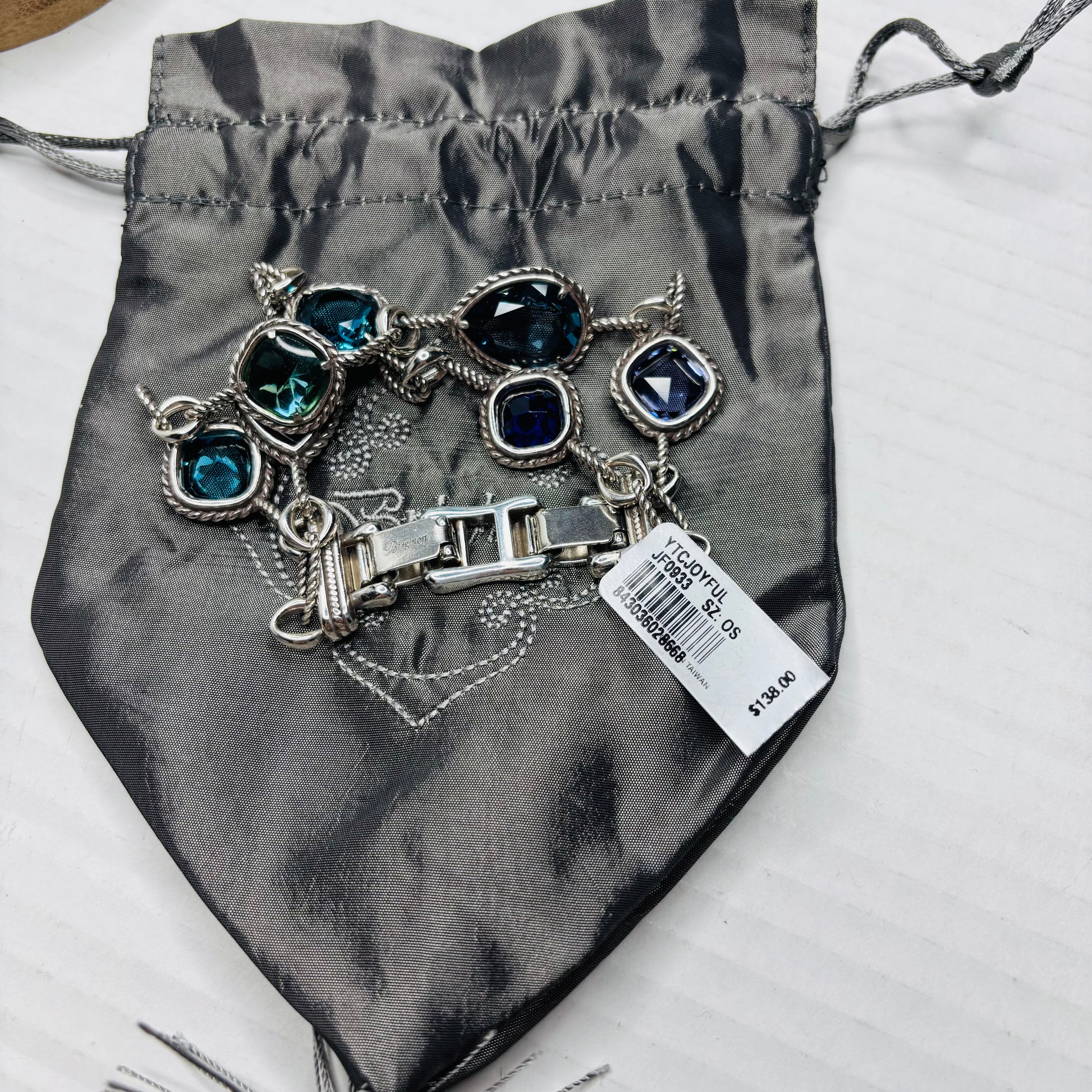 • Authentic Brighton "B" heart charm dangling near the clasp.