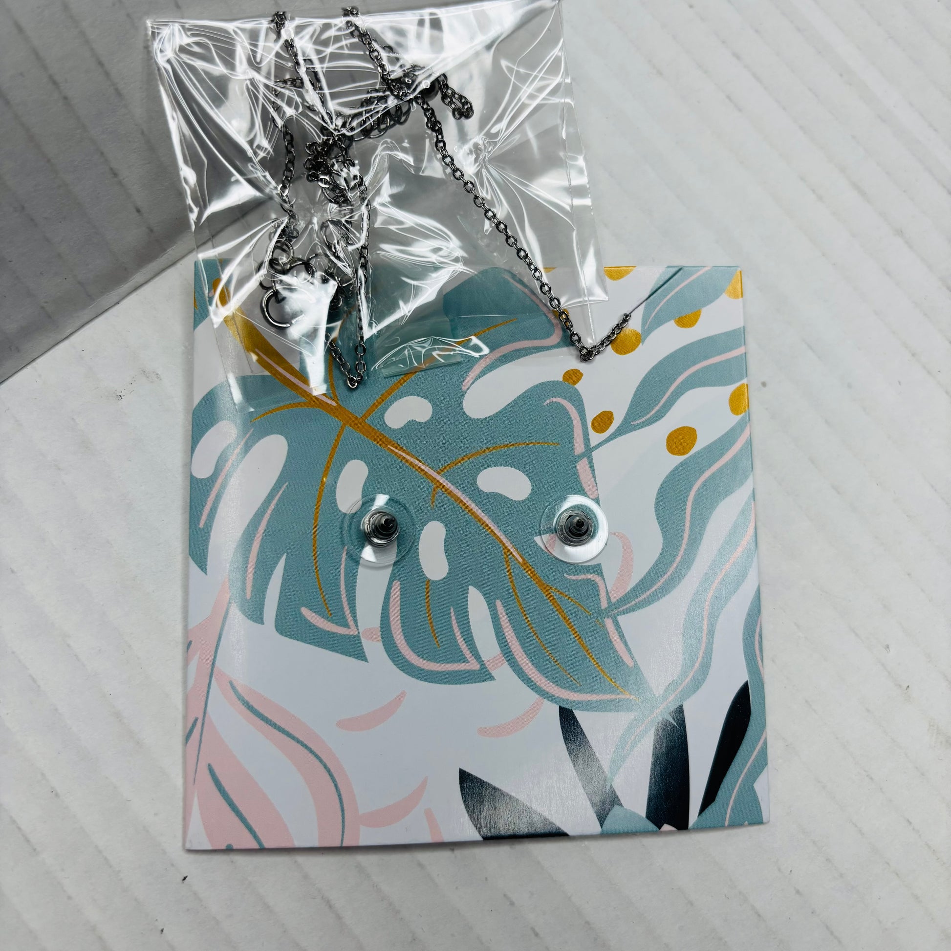 • Closure: Standard post backing for earrings, lobster clasp for necklace.