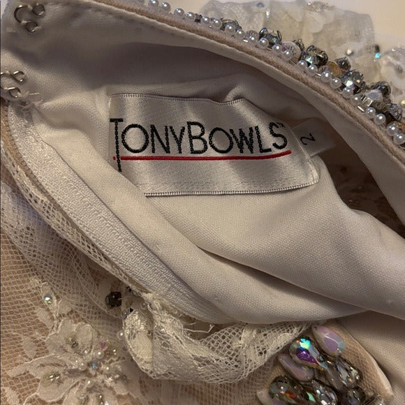 TONY BOWLS Tamia White Lace Overlay 2 Piece Gown Size 2