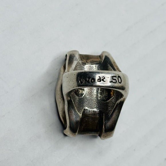 Excellent Pre-Owned UNO DE 50 Aggerate Large Fuchsia Elements Crystal Ring Size 7, Originally $255