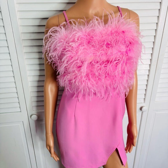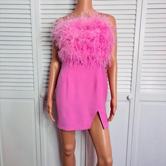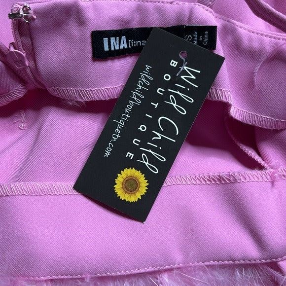 *NEW* INA Feathered Tube Dress in Pink Size Small
