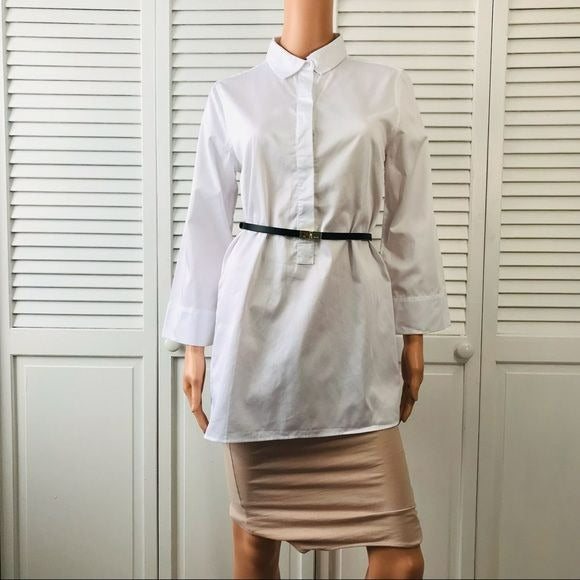Details: NM Neiman Marcus white 100% cotton half button up tunic long sleeve shirt