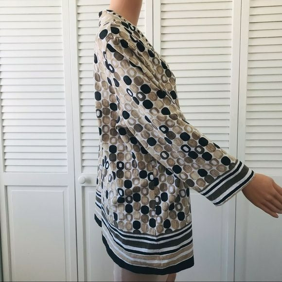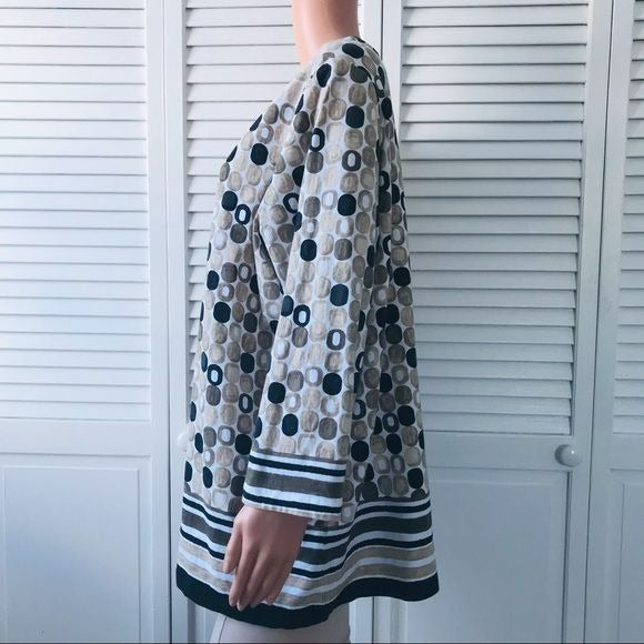 Details: Ruby Rd. v-neck studded printed cotton and spandex blend shirt
