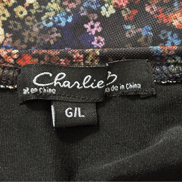 Excellent Pre-Owned CHARLIE B Printed Ruched Mesh Top in Floret Size Large, MSRP: $89