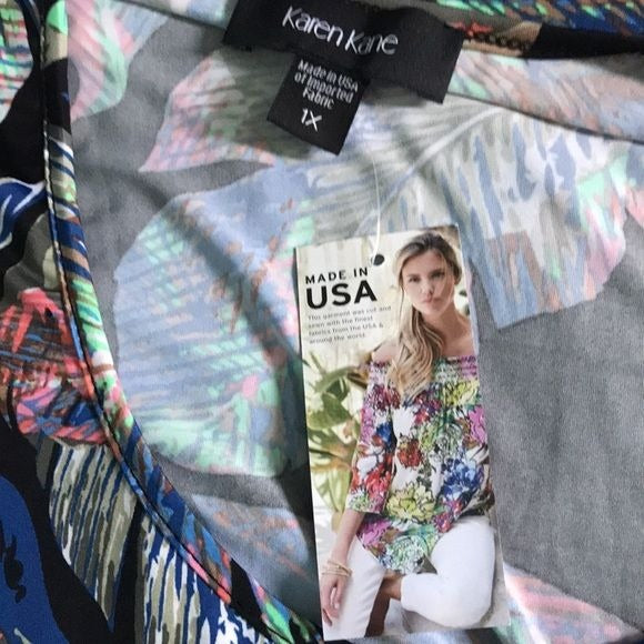 Details: Karen Kane beautiful black tropical print shirt