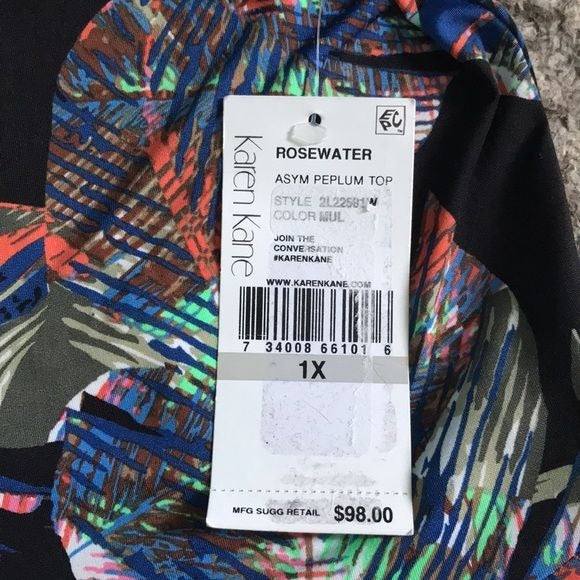 *New* KAREN KANE Rosewater Asymmetrical Peplum Top Size 1X