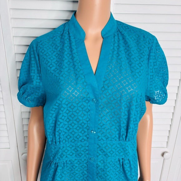 ATTENTION Semi Sheer Short Sleeve Button Down Blouse in Blue Size Large