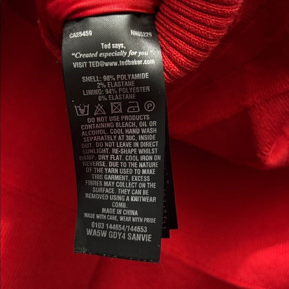 This stunning red knit dress by Ted Baker London is a quintessential piece from the brand, featuring their signature fit-and-flare silhouette and detailed knit work. Perfect for a special occasion, holiday party, or a chic everyday look.